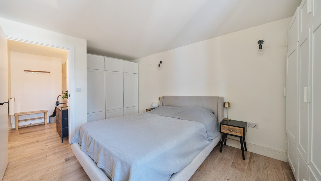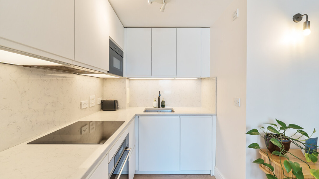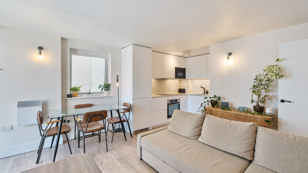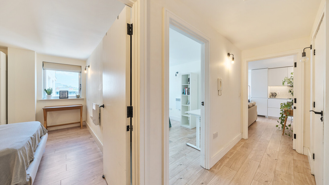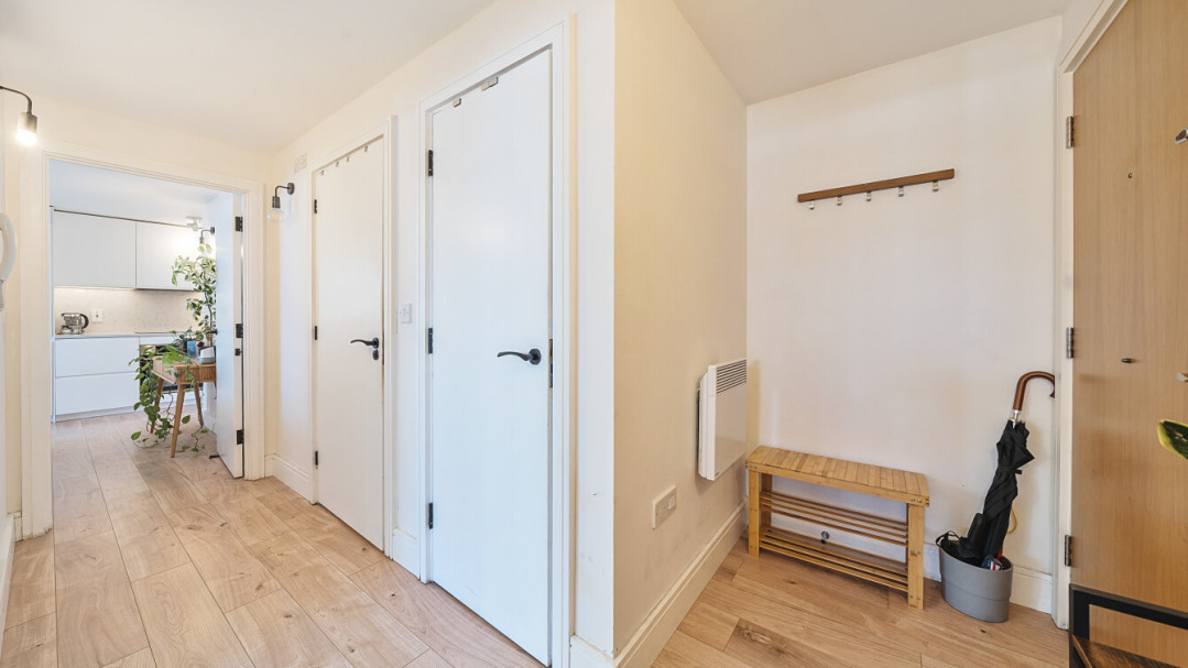 Enter this apartment via a spacious hallway with storage. The dual aspect open plan living and kitchen area opens onto a private balcony. A sleek kitchen includes fully integrated appliances, including a dishwasher, and quartz work surfaces. Two generous double bedrooms and a contemporary bathroom complete the accommodation.