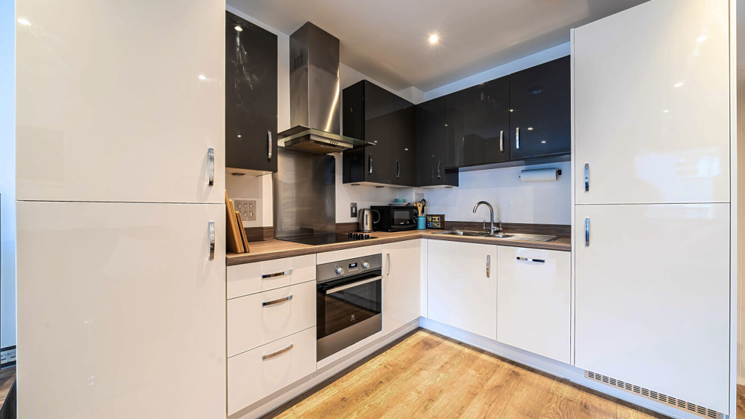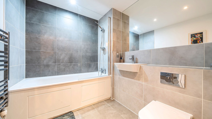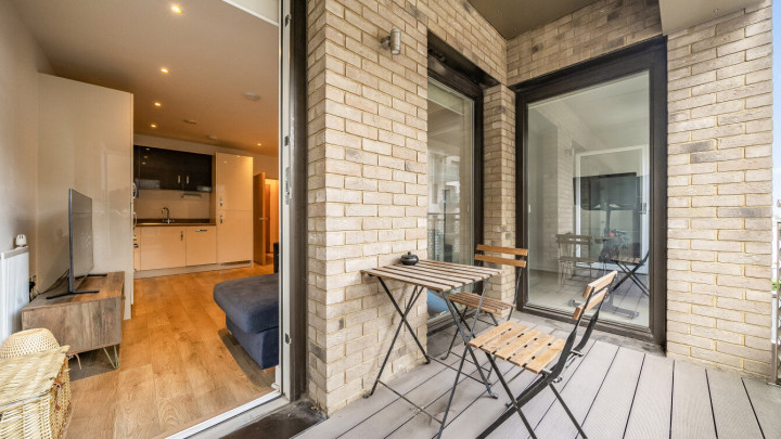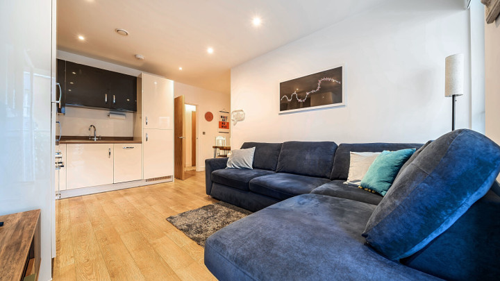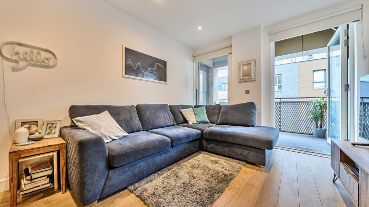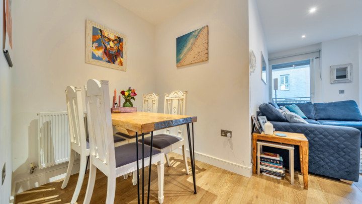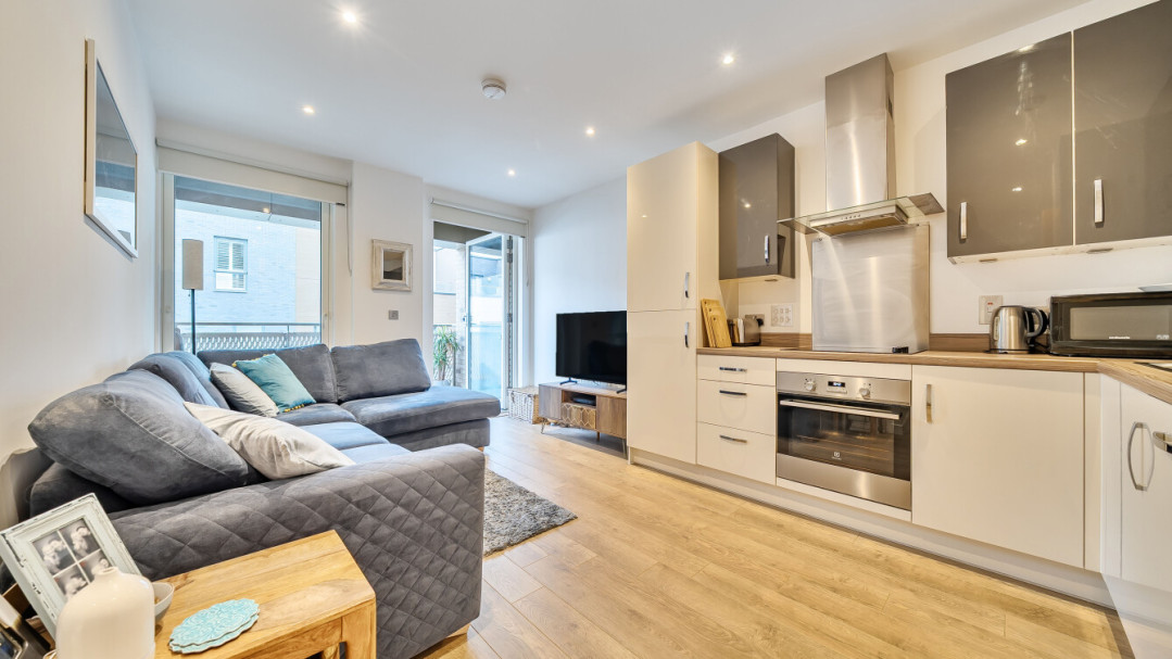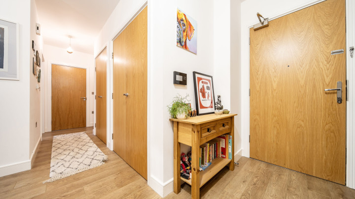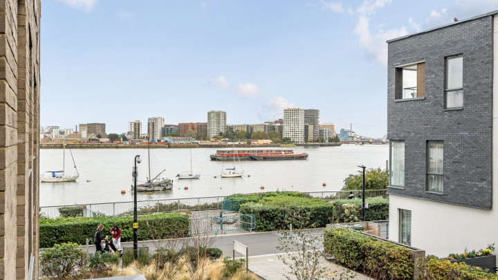 Enter this east facing first floor apartment via a wide hallway with loads of storage. Uninterrupted river views can be fully enjoyed from a private balcony, which is large enough for dining and entertaining. The main L-shaped living area incorporates a high gloss Symphony Woodbury kitchen with integrated appliances as well as a designated dining area. The well proportioned and carpeted bedroom comes with a built in mirrored wardrobe and also overlooks the balcony. A contemporary bathroom completes the accommodation.