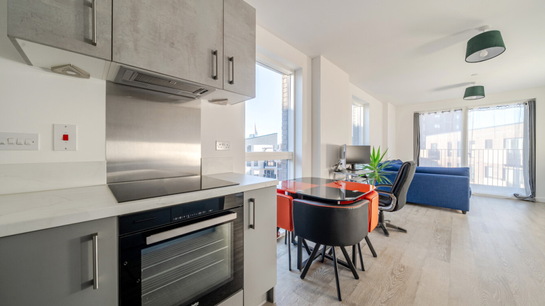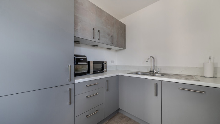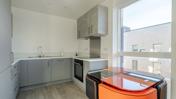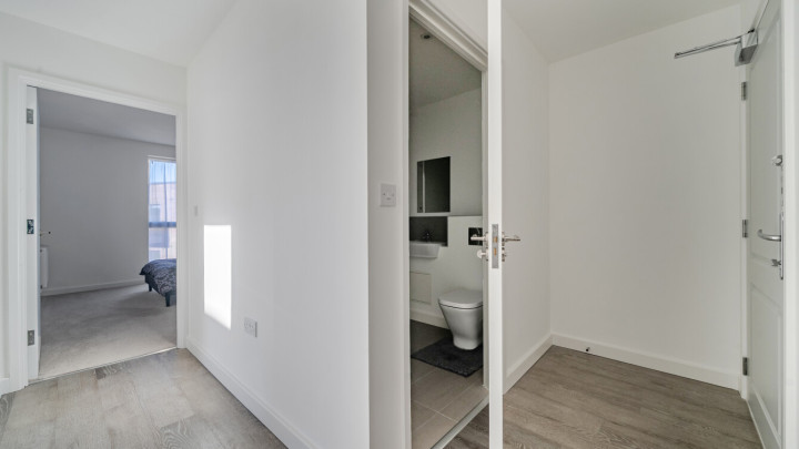 Enter this bright apartment via a spacious hallway with large storage cupboard housing plumbing for your washing machine. The dual aspect open plan living area features a modern grey kitchen with fully integrated appliances and opens onto a private balcony with views across the manicured communal gardens. A good sized double bedroom and contemporary bathroom complete the accommodation.
