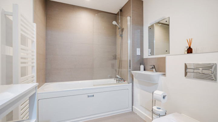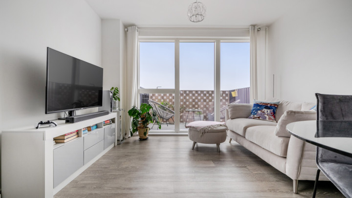 Welcome to this modern spacious bright and airy one bedroom apartment. The Hallway on entrance to the property is of good size and has the benefit of storage cupboards. There is an open plan living area which leads onto the private balcony which is great for relaqxing or entertaining. The kitchen consists of modern grey units with the benefit of integrated appliances. There is a good sized double bedroom with fitted wardrobes. The bathroom is beautiful tiled with a white piece suite and shower over bath.