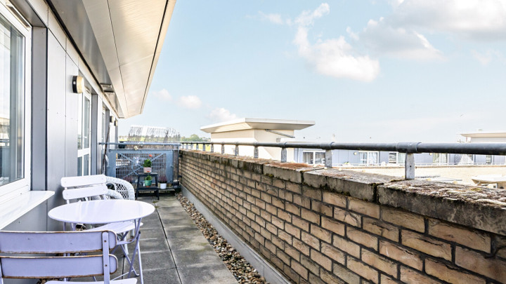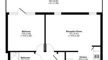 All rooms lead off a central hallway, with three storage cupboards, in this bright east facing apartment. A large open plan reception area overlooks a full width terrace with treeline views. The kitchen area includes a range of white wall and base units and marble effect worktops, with integrated oven, hob and extractor and spaces for white goods. The bright bedroom has floor to ceiling windows and includes a door to the terrace. A lovely contemporary bathroom completes the accommodation.