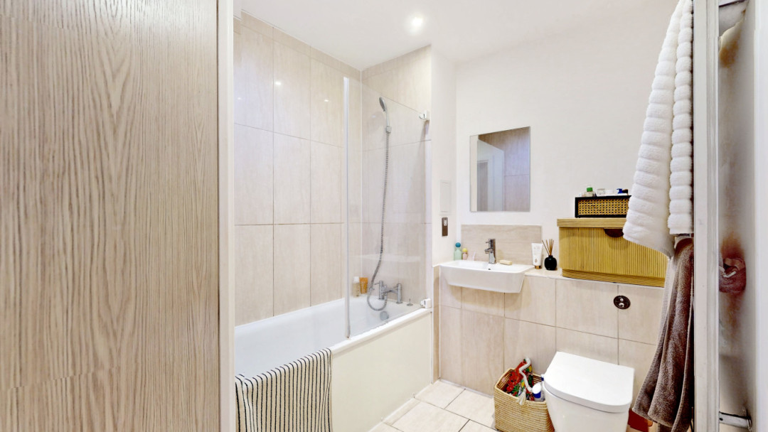 Enter this this well presented two-bedroom, two-bathroom, south facing apartment via a spacious hallway with storage. There is a separate kitchen fitted with high gloss units and including fully integrated appliances. The generous reception room features floor to ceiling windows opening onto a balcony large enough to dine and relax. One of the two well proportioned double bedrooms includes an en-suite shower room and fitted wardrobe. The other bedroom is served by a contemporary family bathroom.