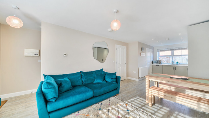 This bright and spacious semi-detached house consists of a stylish open-plan kitchen and living area, flooded with natural light . The kitchen is fitted with matt wall and base units, with under-cupboard lighting, and a white stone effect worktop. The kitchen also benefits from integrated appliances including a fridge freezer, oven, cooker and extractor fan. The rear opens out onto a generous private garden A WC completes downstairs. Spacious main double bedroom with built-in cupboards. Bright and airy second double bedroom with built-in cupboards. The bathroom comes complete with a white three-piece suite with a shower over bath and a stone tile surround. Driveway with space for 2 vehicles.