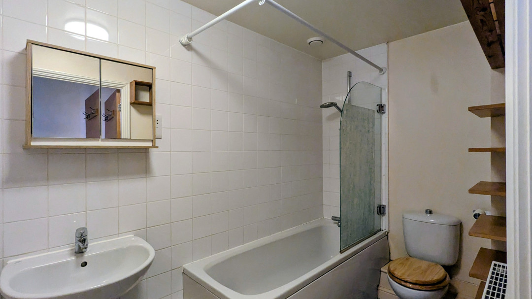 Enter this spacious apartment via a hallway with storage cupboard. Find two double bedrooms and a large square reception room from which the kitchen opens. The kitchen has a range of Beech units with black work surfaces and includes an integrated oven, hob and extractor. a family bathroom completes the accommodation.