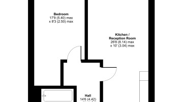 Enter this south facing apartment via a central hallway with store. A generous open plan living area is to your right opening onto a a juliette balcony. There is a modern kitchen with integrated oven, hob and extractor and spaces for your white goods. A well proportioned bedroom and a part-tiled family bathroom, with a shower over the bath, completes the accommodation.