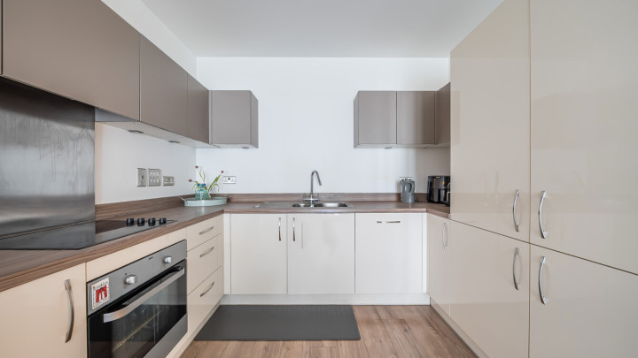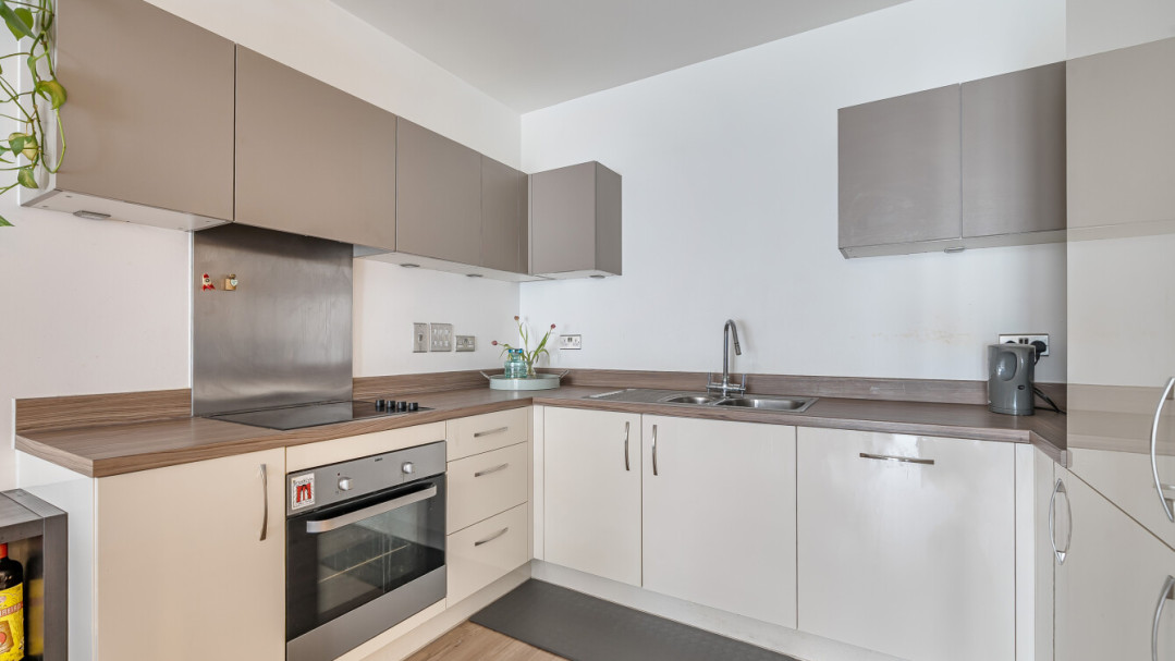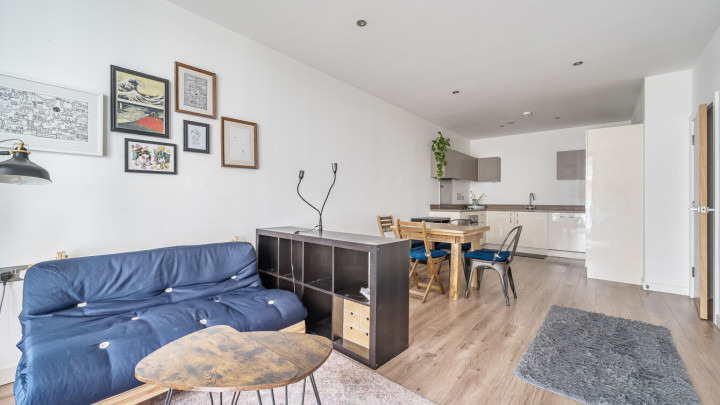 This larger than average one bedroom apartment offers a spacious open plan living area opening onto a good sized private balcony. The balcony is great for relaxing or entertaining. The apartment is full of natural light with floor to ceiling mirrors in most rooms.The kitchen comprises high gloss units and fully integrated appliances. A double bedroom, with mirrored wardrobes and a contemporary family bathroom complete the accommodation along with a large walk-in store accessed from the hallway.