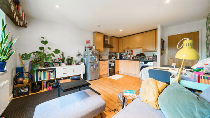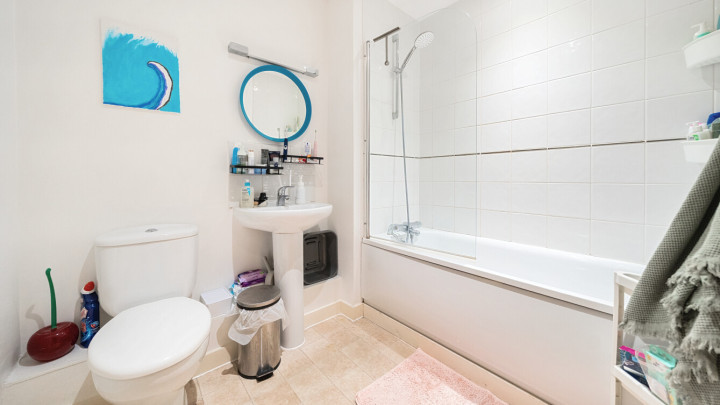 This bright and spacious north east facing one bedroom apartment has an open-plan kitchen and living area. The kitchen is fitted with beech wall and base units and a granite effect worktop with spaces for all your appliances. There is a spacious main double bedroom with built in storage and the bathroom comes complete with a white three-piece suite with a shower over bath.