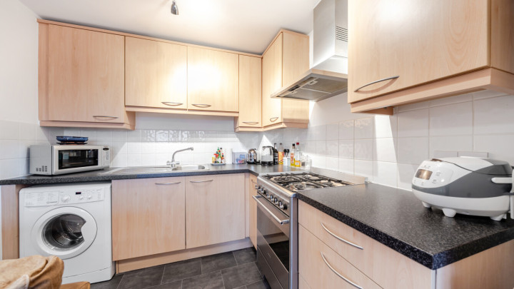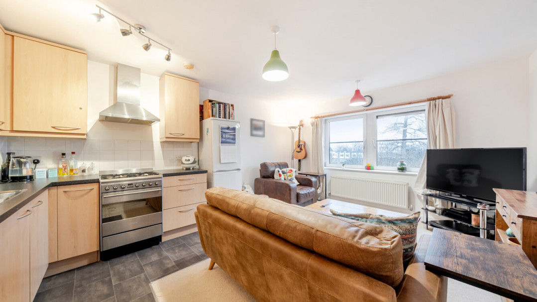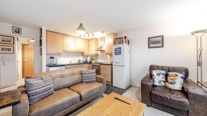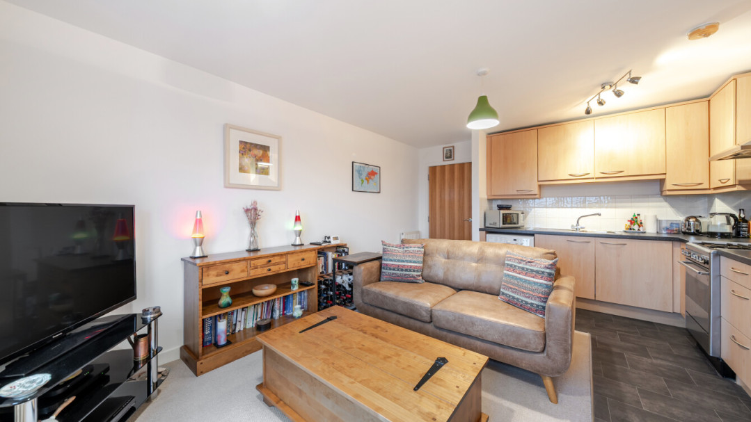 This bright and spacious north east facing one bedroom apartment has an open-plan kitchen and living area. The kitchen is fitted with beech wall and base units and a granite effect worktop with spaces for all your appliances. There is a spacious main double bedroom with built in storage and the modern bathroom comes complete with a white three-piece suite with a shower over bath.