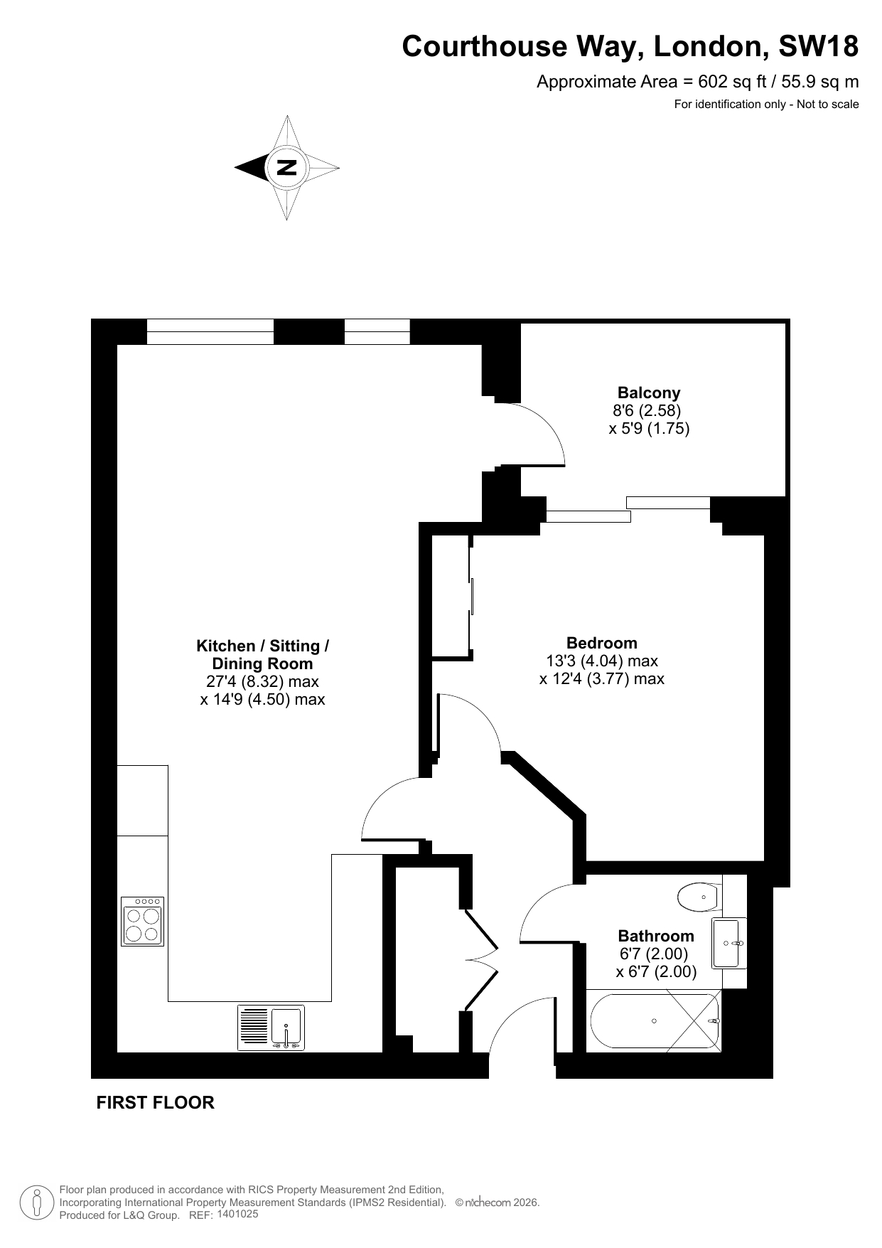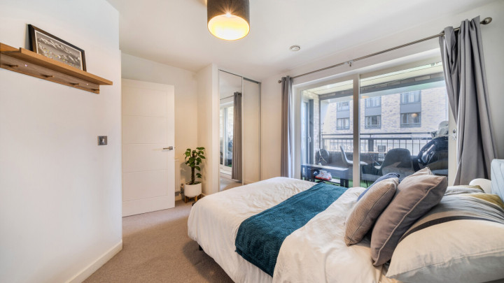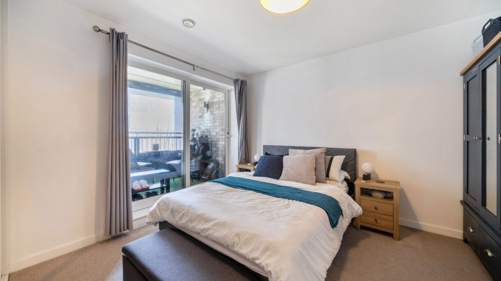 This beautifully presented apartment consists of a dual aspect open-plan kitchen and living area, flooded with natural light from wide floor-length windows opening onto both a juliette balcony and a private balcony, which is large enough to dine or recline. The modern kitchen includes integrated appliances. A spacious double bedroom benefitting from built-in storage also opens onto the balcony and a contemporary bathroom completes the accommodation.