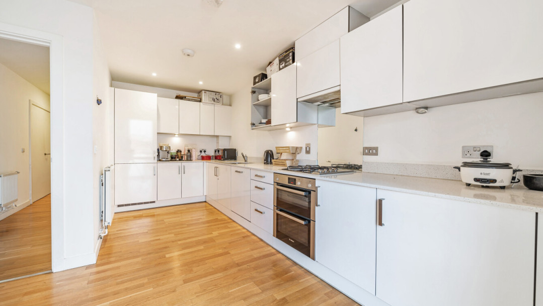 This spacious apartment offers a dual aspect reception room opening into a private balcony over looking the park, as well as a separate kitchen diner with white units and including integrated appliances. There are three double bedrooms, the largest having fitted storage. The large bathroom and separate cloakroom offer the opportunity to upgrade if required. There is additional storage in the hallway.
