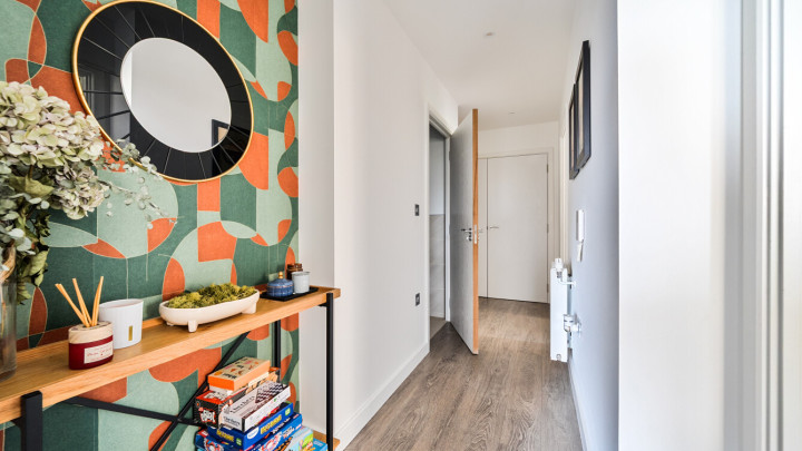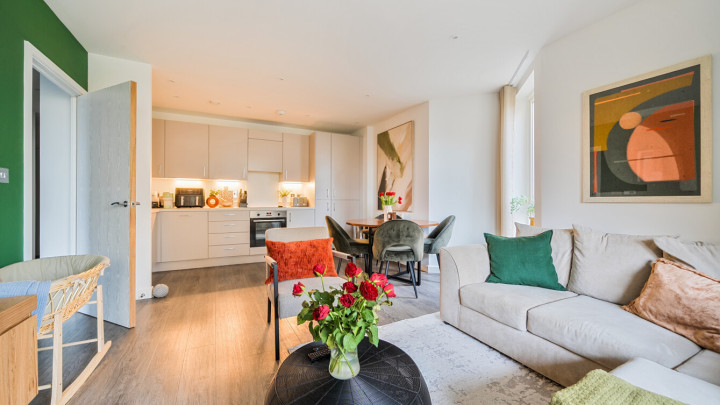 The surrounding neighbourhood is famed for its excellent schools, making it a popular choice for families. A wealth of local amenities is available, including boutique shops, cafes, restaurants, and supermarkets, all within walking distance. For outdoor leisure, nearby open spaces such as Victoria Park and the picturesque paths of the Dollis Valley Greenwalk provide ideal spots for relaxation and exercise.