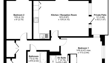 This well presented, spacious dual aspect ground floor apartment has been newly decorated throughout. The well proportioned open plan reception area opens onto a west facing private patio. The modern kitchen includes fully integrated appliances. there are two double bedrooms, the master with built in wardrobes and an ensuite shower room. A contemporary bathroom serves the second double bedroom.