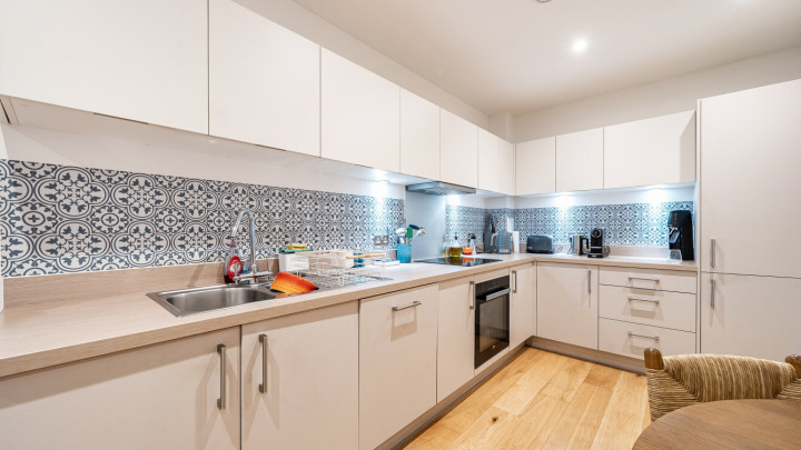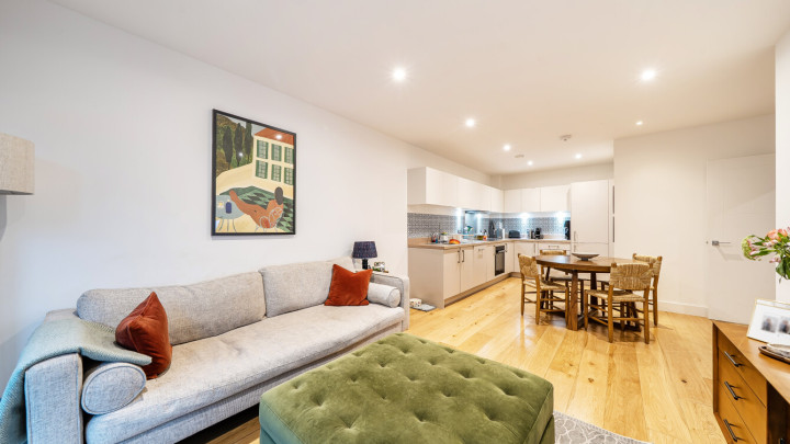 This stylish second floor apartment is accessed via a spacious entrance hall with utility cupboard/storage. The open plan living area opens onto a generous east facing private balcony. The modern kitchen includes fully integrated appliances. Both double bedrooms have the same aspect as the reception room, the larger of the two bedrooms with two door mirrored wardrobe. A contemporary bathroom completes the accommodation.