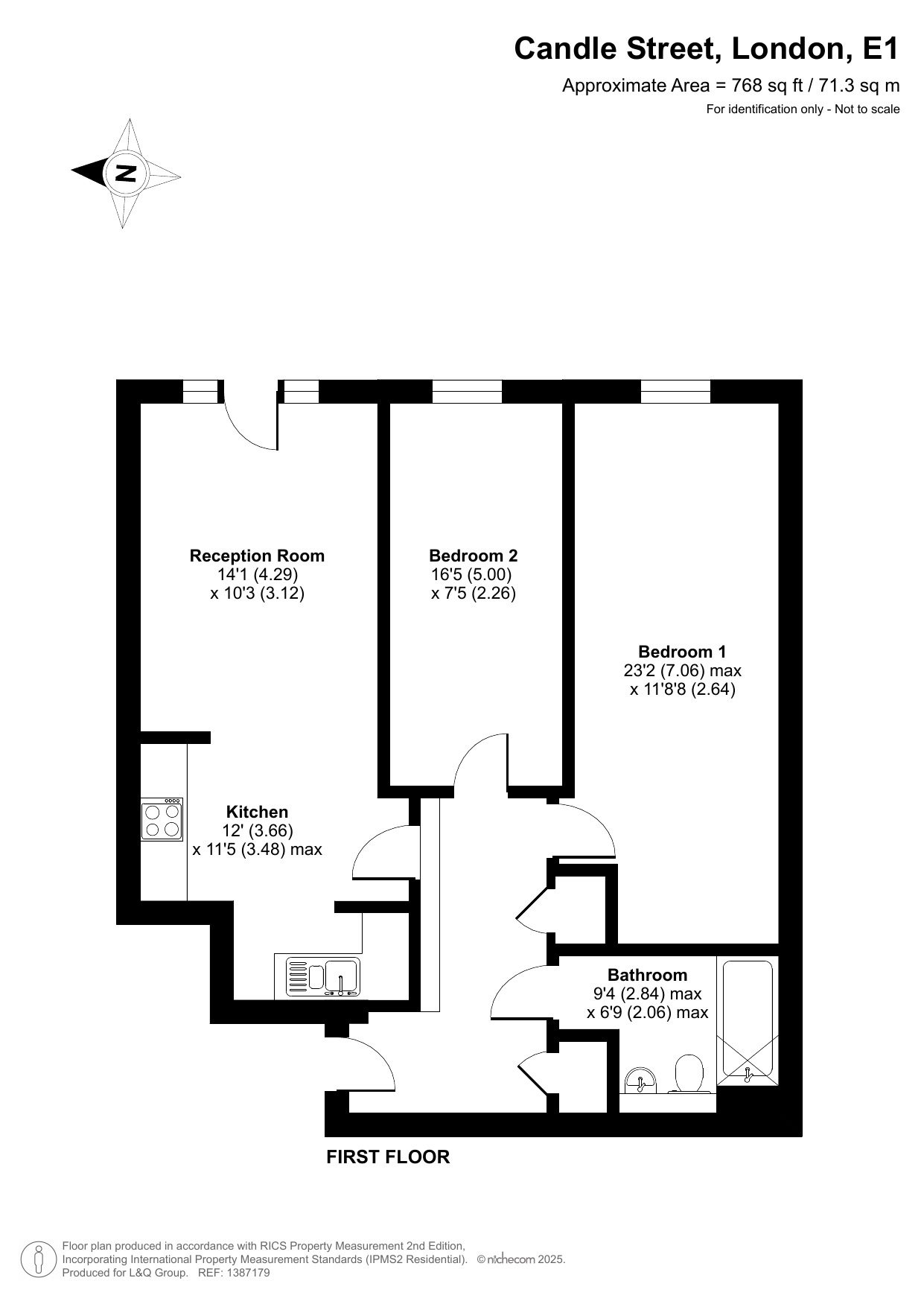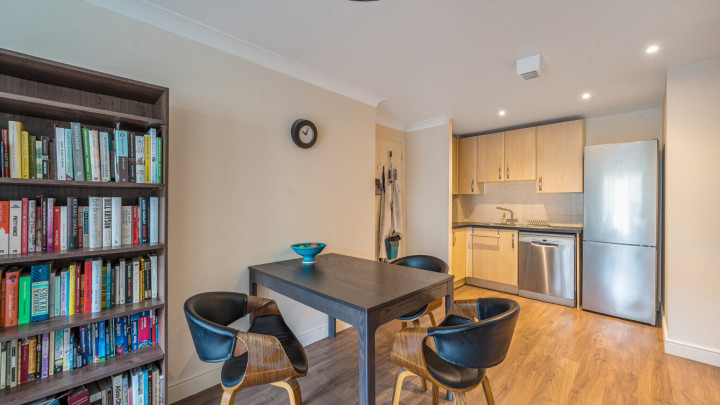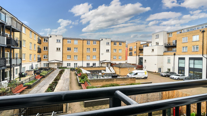 Enter this two bedroom east facing apartment via a hallway with storage. A well proportioned open plan reception room has a door leading to a juliette balcony. The kitchen is fitted with a range of Beech wall and base units and includes an integrated oven, hob and extractor. The generous main bedroom gives ample space for a home office or alternatively use the second double room as an office. A recently renovated Metro-tiled bathroom completes the accommodation.