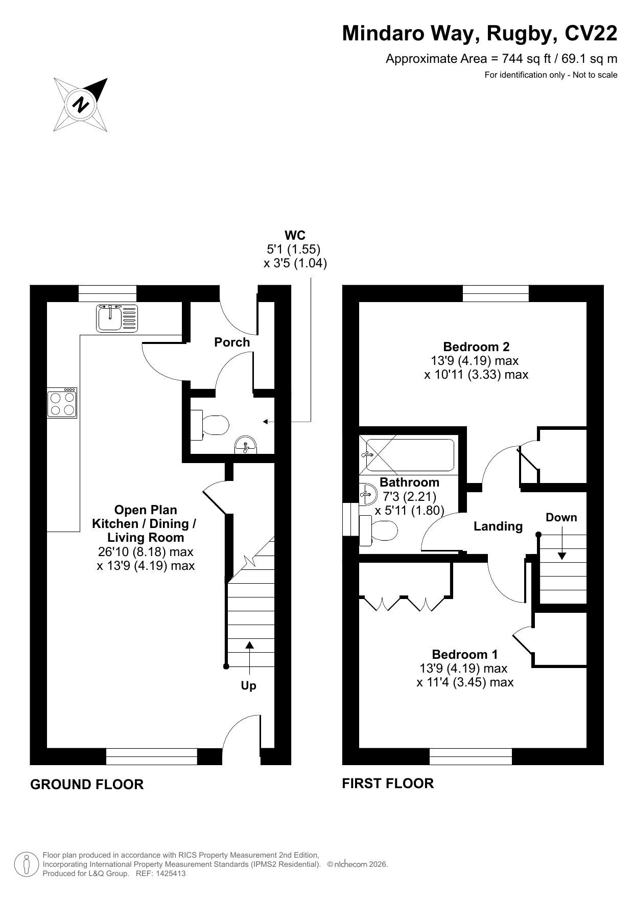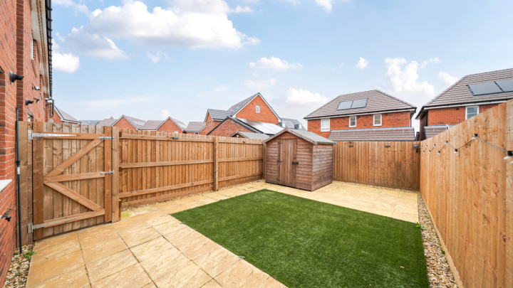 The ground floor of this well presented home consists of a dual aspect open plan kitchen/living area with the kitchen, featuring fully integrated appliances, to the rear. There is a rear lobby area, which opens onto the garden and also provides access to a downstairs cloakroom/WC. On the first floor find two double bedrooms, the master including fitted wardrobe. A contemporary family bathroom conmpletes the accommodation. There is side access to the garden, which includes a patio area and shed.