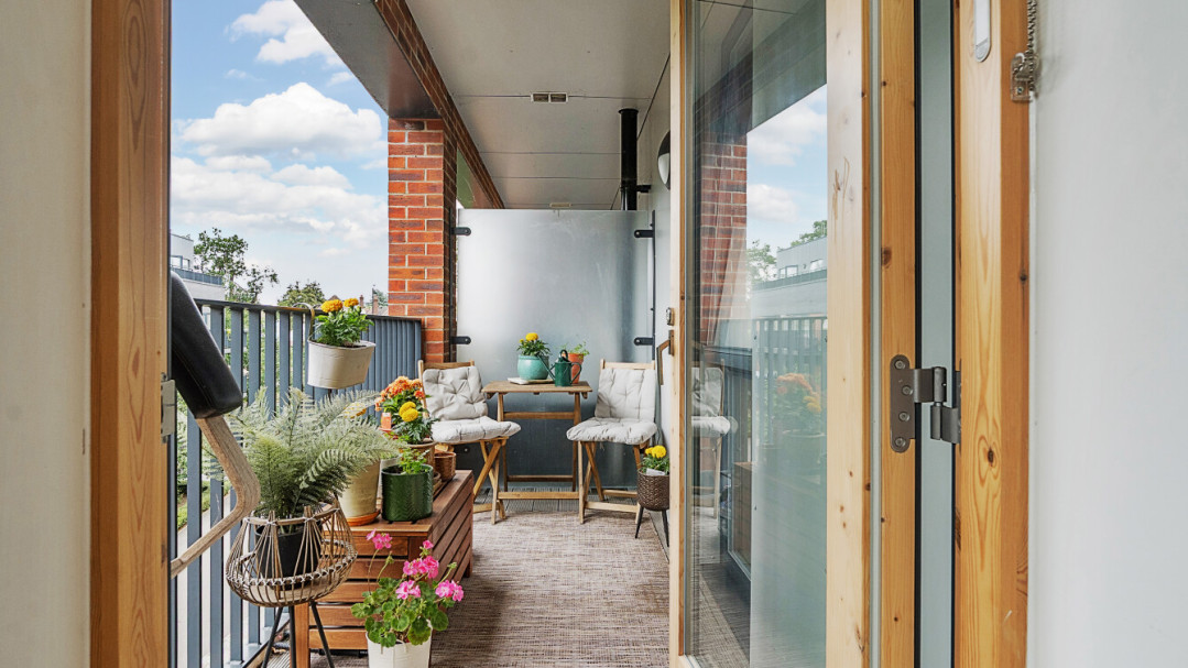 All rooms lead off the central hallway, with storage, in this freshly decorated, generous, west facing apartment. To your right, find a contemporary bathroom and a large double bedroom with triple mirrored wardrobe. The dual aspect main reception room runs from back to front of the apartment and is lit by floor to celling windows with treetop views and overlooking communal gardens. This room also opens onto the pretty balcony.