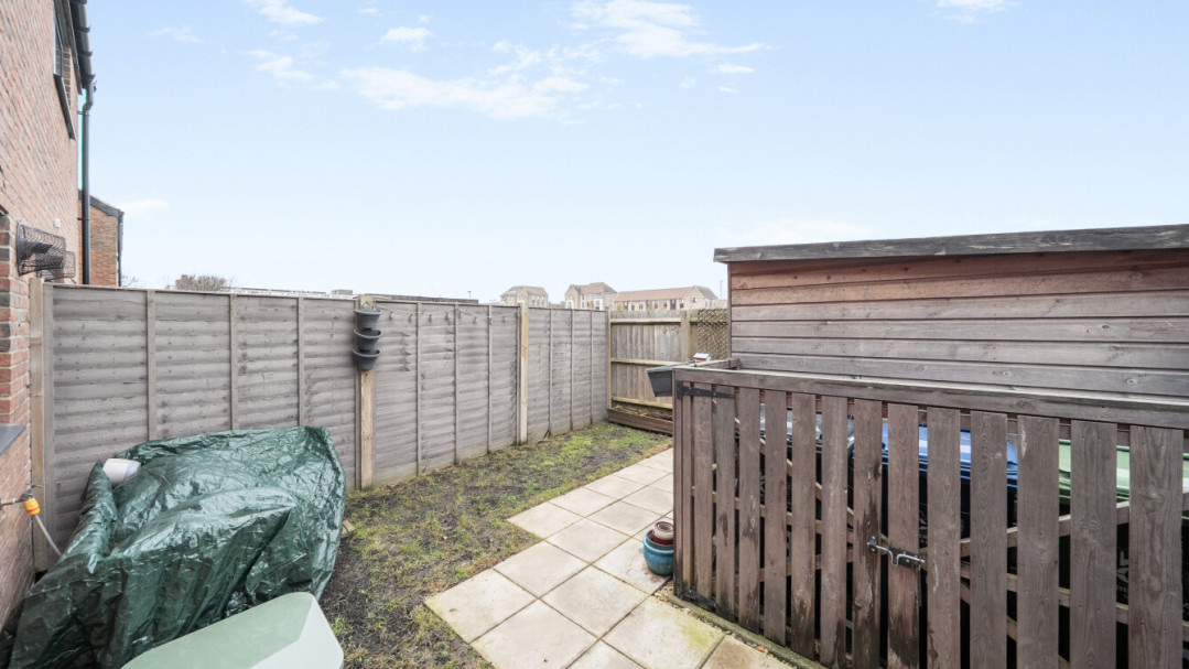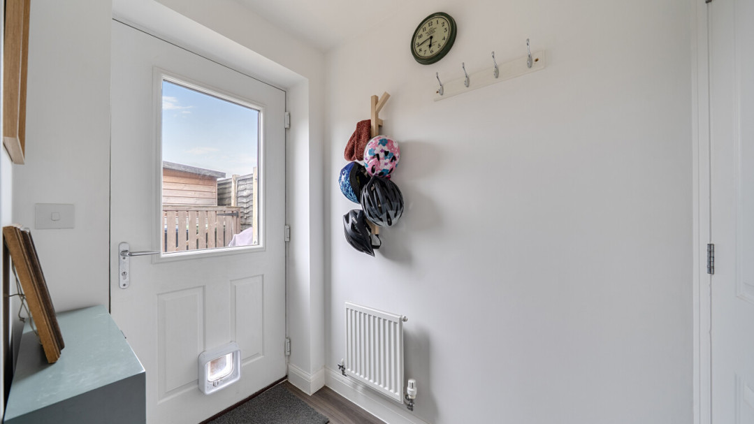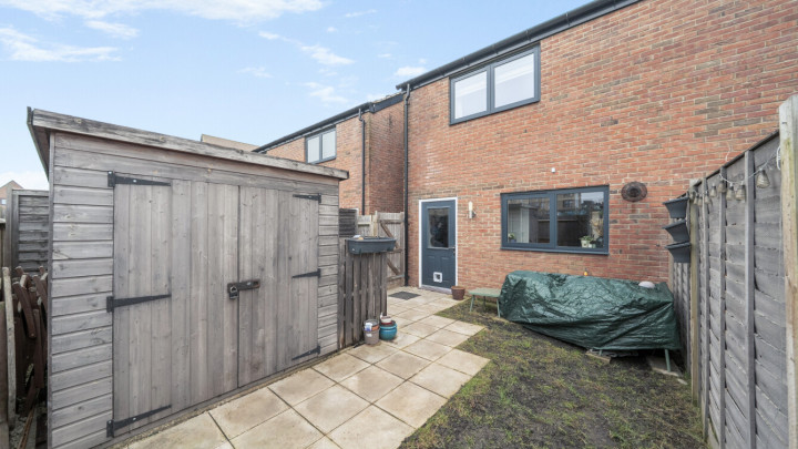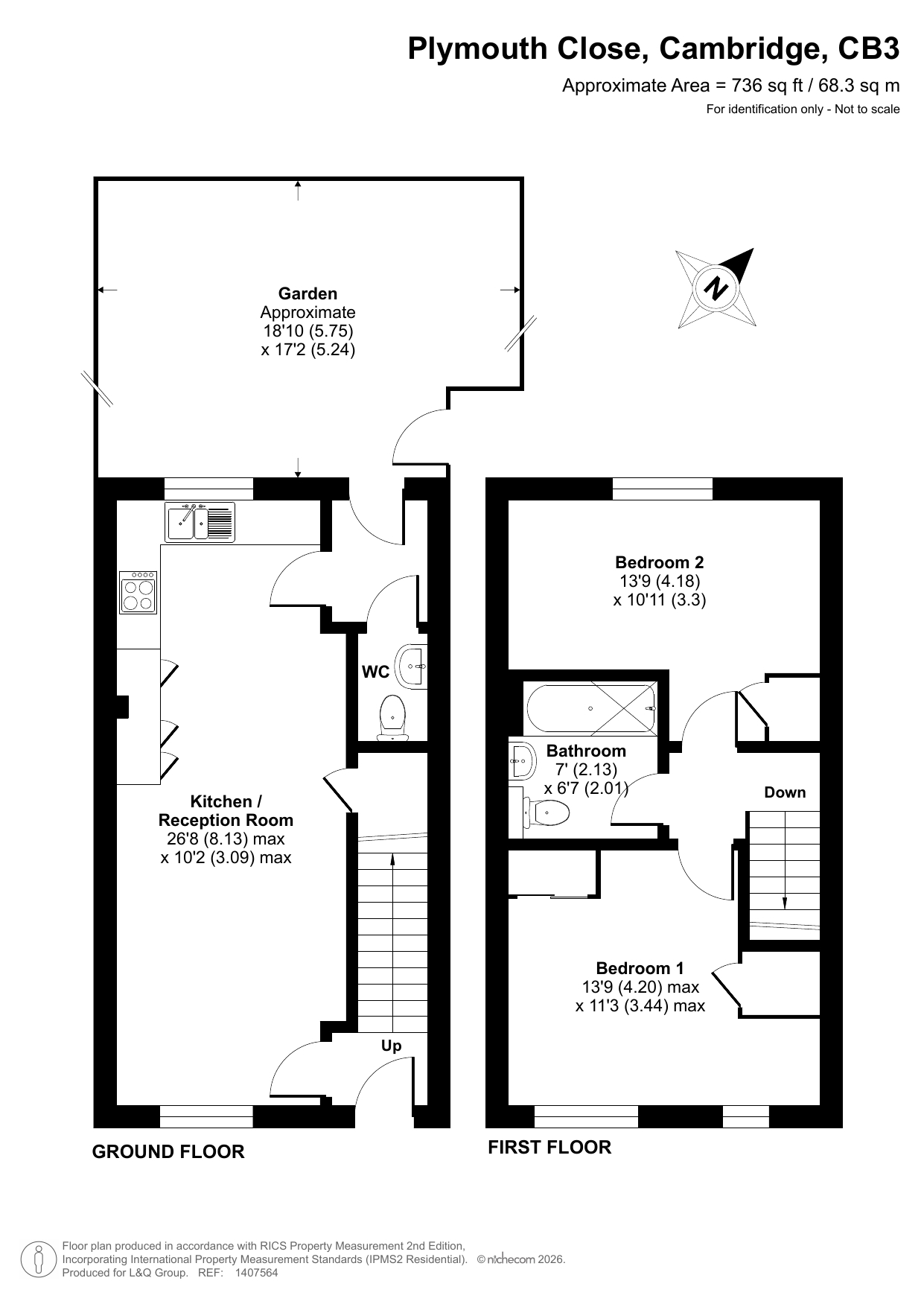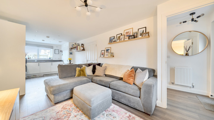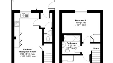 Enter this house via a small entrance hall with stairs taking you to the first floor. On the ground floor find a dual aspect living/dining/kitchen area, with the kitchen to the rear of the house overlooking the garden. From the kitchen there is a small lobby with door to the garden and a downstairs cloakroom/WC. On the first floor are two generous doouble bedrooms, each with in-built storage, served by a contemporary family bathroom.