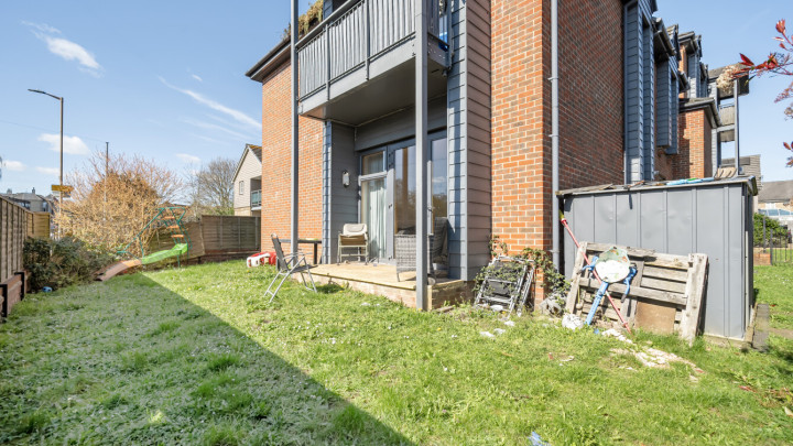 Enter this bright and spacious ground floor apartment via a central hallway with storage. The dual aspect open plan reception room opens onto a private sunny garden that wraps around three sides of the apartment. The modern kitchen includes some integrated appliances. There are two well proportioned double bedrooms, the master having benefit of a mirror-fronted wardrobe and en-suite shower room. A modern bathroom serves the second bedroom.