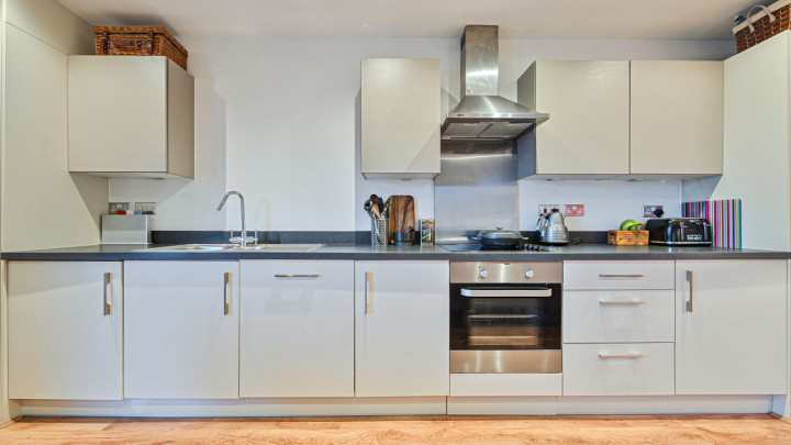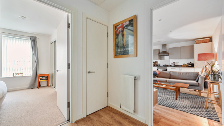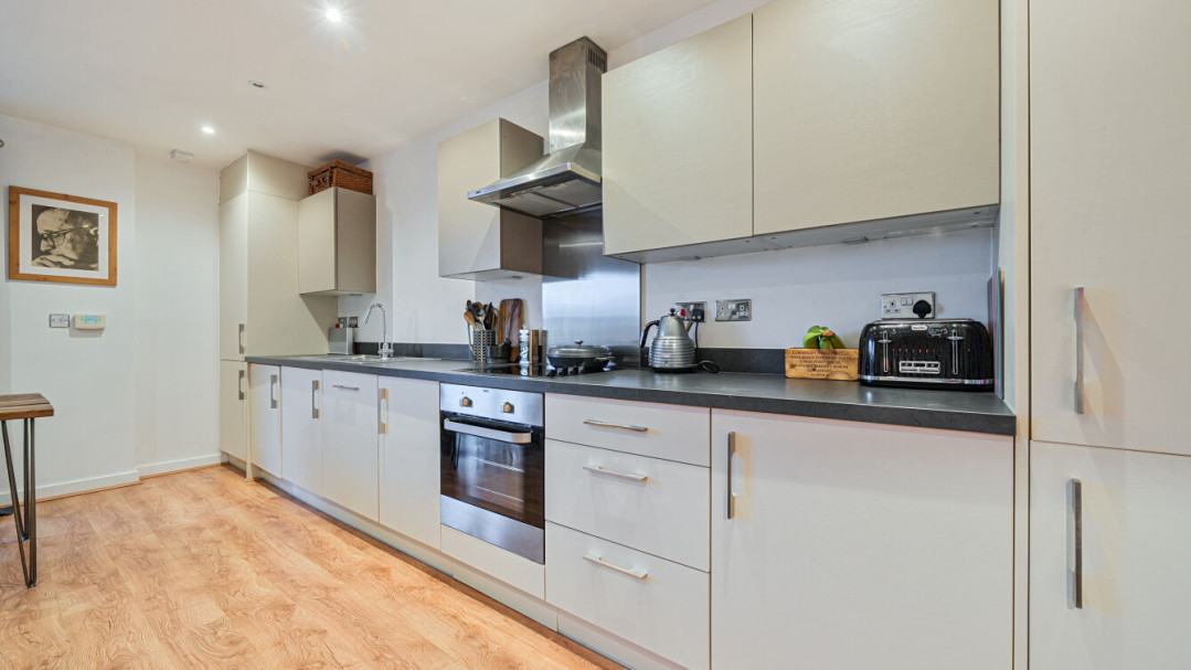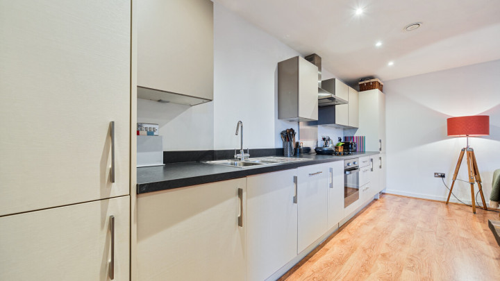 Welcome to this bright and modern apartment. The property consists of an open-plan kitchen and living area which leads onto your own private balcony which is great for relaxing and entertaining. The whole apartment is flooded with natural light from wide floor-length windows. The kitchen is modern with beautiful gloss units and grey stone effect worktops with the benefit of integrated appliances. The double bedrooms is spacious with fitted wardrobes. A contemporary bathroom comes complete with a white three-piece suite with a shower over bath.