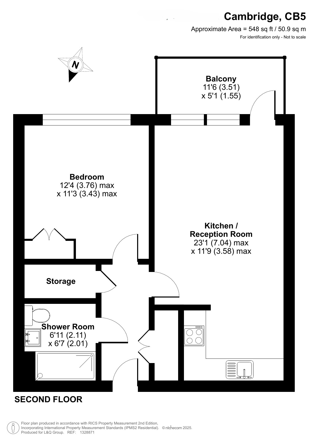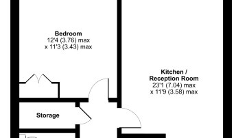 Enter this apartment via the hallway, which contains two large stores. The open plan reception area includes a high quality kitchen with integrated appliances. The room opens onto a south facing balcony large enough to use for relaxing and dining. A generous double bedroom with fitted wardrobe and a contemporary bathroom complete the accommodation.