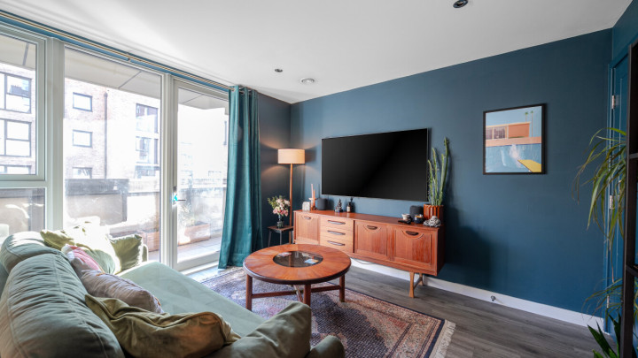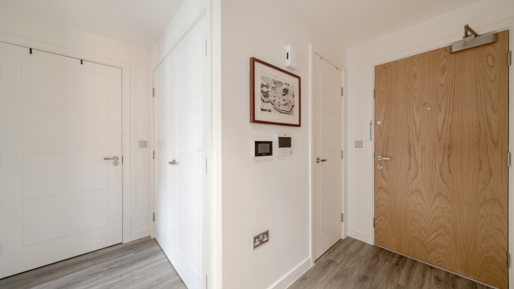 This bright and airy one bedroom south facing apartment consists of an open-plan kitchen and living area, which opens up onto a full width terrace with London skyline views. The modern kitchen includes fully integrated appliances. There is a generous double bedroom benefitting from a built-in wardrobe; and a contemporary bathroom, with a white three-piece suite with a shower over the bath, completes the accommodation.