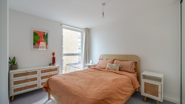 Enter this apartment via a bright and spacious hallway with storage, including a utility cupboard. A dual aspect open plan reception area leads onto a balcony that accommodates a large sofa. The modern kitchen is fitted with high gloss units and includes fully integrated appliances. There are two generous double bedrooms, each with in-built storage. The master includes an en-suite shower room and a contemporary bathroom serves the second bedroom.
