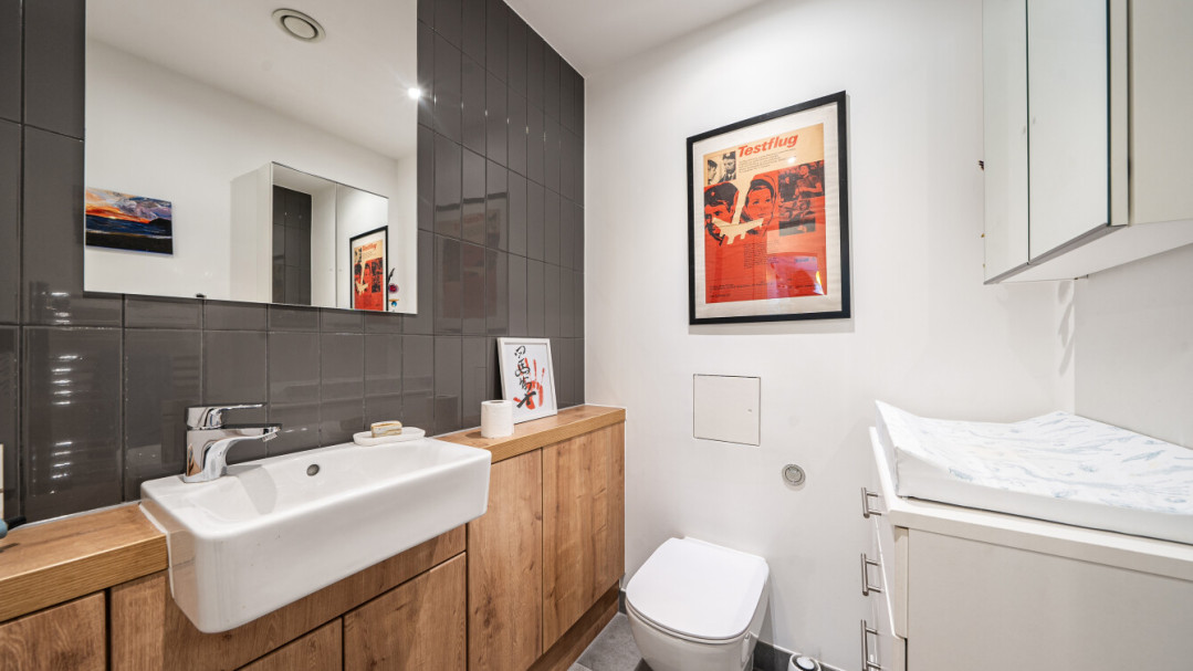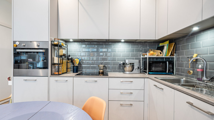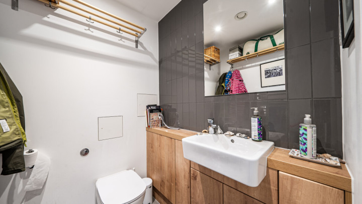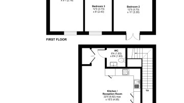 Enter this duplex via your own front door. On the ground floor find a large open plan reception area, which opens onto a private south west facing patio garden, and a guest cloakroom. The kitchen features fully integrated appliances. Stairs take you to the first floor where you will find two double bedrooms and one large single, all south-west facing. One of the doubles, currently used as a home office, opens onto a juliette balcony. The second double includes a built in wardrobe and walk-in store. This floor also features a contemporary bathroom and second cloakroom.